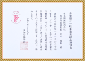 子育てと仕事の両立に積極的に取り組む企業が厚生労働大臣より認定される制度です。
